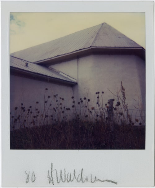Known primarily as a painter and print-maker, Waldrum began working with the Polaroid when he was completing his annual summer painting trip to Taos. Set to return to New York the next day, he didn’t have time to sketch San Jose de Garcia Church in Las Trampas – drawings he would need to guide him on a future painting. Lacking even a camera to take some stills, he sped to a nearby Safeway and bought a Polaroid One-Step and four boxes of film. He managed to barely beat the setting sun in exposing all the film, which developed on the car seat next to him as he drove home to finish packing.